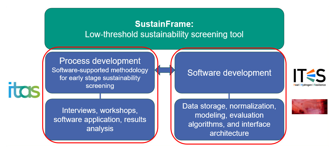 Die Arbeiten des ITAS konzentrieren sich auf die Entwicklung des Screening-Prozesses als Grundlage für die Softwareentwicklung und die Einbindung der Anwendungsfälle in das Co-Design, die Co-Implementierung und Co-Reflektion von SustainFrame. Dabei kommen Methoden der multikriteriellen Entscheidungsanalyse zur Problemstrukturierung, Kriteriengewichtung und -aggregation sowie zur Bewertung von Alternativen und Analyse der Ergebnisse zum Einsatz.